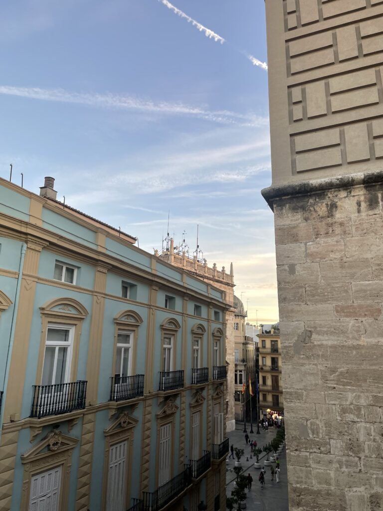 From one of the balconies, you have a view on the Torres de Serano, and from the balcony off the bedroom, you can see the oldest tower in the city, the Bartalomeus tower.